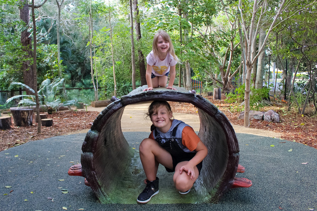 Nature Playground – A shaded play area behind the Orchid House where children can explore balancing logs, climbing ropes, and other nature-inspired play elements that encourage movement and discovery.